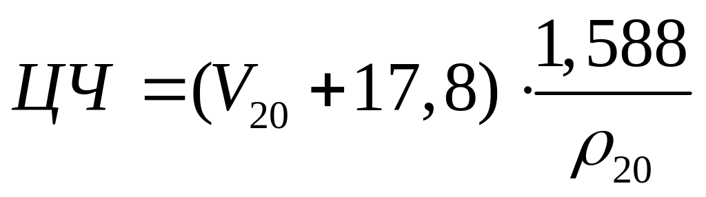 Оценить воспламеняемость дизельного топлива можно и расчётным путём с помощью эмпирических формул, которые пригодны для топлив прямой перегонки без присадок, кроме топлива широкого фракционного состава, содержащего бензиновые и керосиновые фракции:
