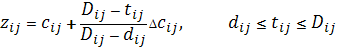 Нехай ctj — вартість виконання роботи (i,j) у нормальному режимі, а Сij + ΔCij — витрати на її виконання у максимально прискореному режимі. Припустимо, що залежність вартості zij від тривалості виконання tij є лінійною: