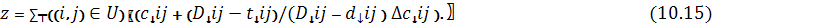 Тому додаткові витрати через затримку завершення проекту складуть величину st грошових одиниць. Щоб врахувати ці витрати при оптимізації сітьового графіка за показником мінімізації загальної вартості, до економіко-математичної моделі (10.12)— (10.16) слід ввести такі корективи: