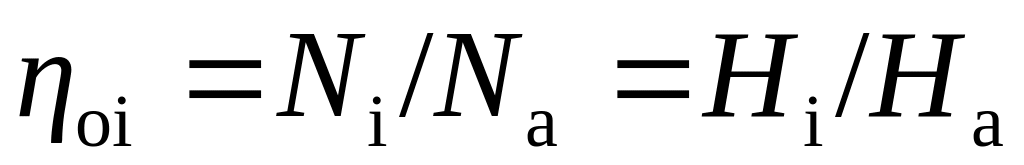где Ni и Nа – внутренняя мощность при действительном рабочем процессе пара в турбине и мощность в идеальном процессе, кВт.