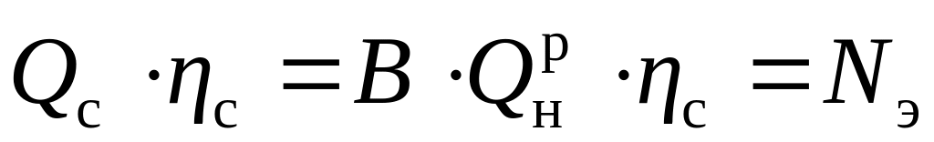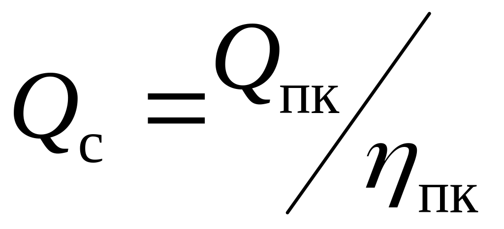 Тепловая нагрузка парогенератора (парового котла) Qпк и расход тепла топлива на электростанции Qc связаны уравнением
