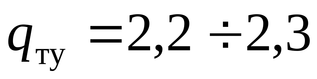 При ту = 0,440,46, qту = 2,22,3 или qту = 81007800 кДж/(кВтч).