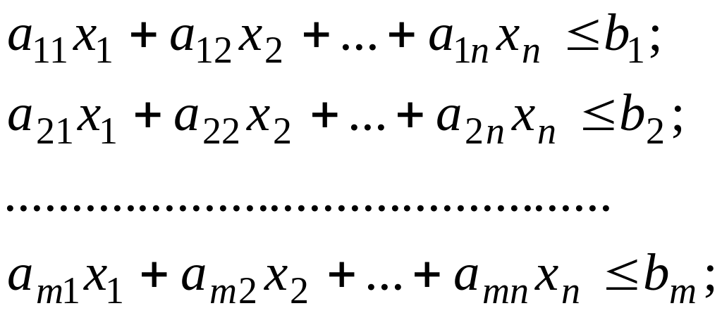 Лінійну функцію виду (1.2) прийнято називати лінійною формою задачі, а безліч наборів ( ), що задовольняють умовам ненегативності змінних і рівнянням (1.1), – областю визначення задачі.