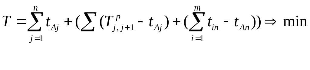 Критерием оптимизации является минимальная продолжительность выполнения комплекса работ. Добиться этого можно за счет изменения очередности освоения частных фронтов работ. Запишем данную функцию в виде :