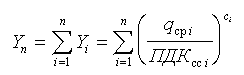 где Yi ≈ единичный индекс загрязнения для i-ого вещества; qcpi ≈ средняя концентрация i-ого вещества; ПДКcсi ≈ ПДКсс для i-ого вещества; ci ≈ безразмерная константа приведения степени вредности i-ого вещества к вредности диоксида серы, зависящая от того, к какому классу опасности (см. ниже) принадлежит загрязняющее вещество.