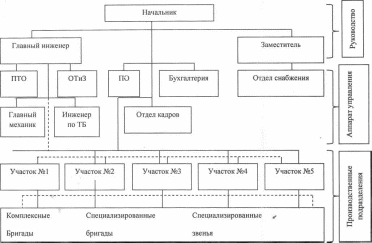 На ниже приведенной схеме (рис. 1.3) представлена структура строительного управления.
