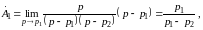 где p1 и p2 – нули полинома знаменателя, которые определяются как корни уравнения