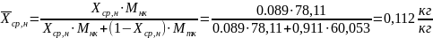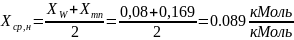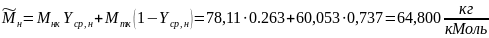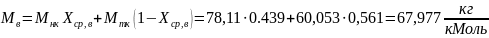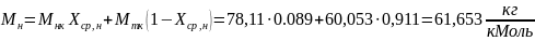 Расчёт средней плотности жидкости ( ) при средней температуре и мольных долях компонентов (см. приложение 1):