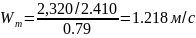 Для данного рабочего сечения скорость пара на тарелке равна:
