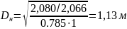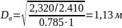 По уточнённому значению скорости пара вновь рассчитывается диаметр колонны по ф. 3.1.