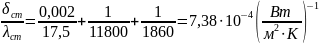 Коэффициент теплопередачи находится с помощью уравнения аддитивности термических сопротивлений на пути теплового потока (ф. 4.2):