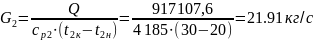 Определим расход охлаждающей воды из указанных уравнений: