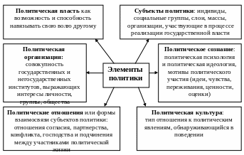 Объект политики – политические отношения, политическая система с ее институтами, социальные группы и личности, участие в политическом процессе.