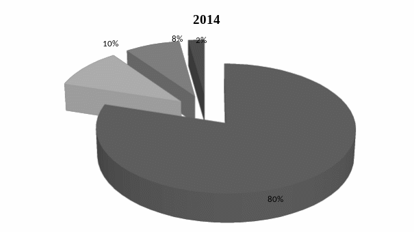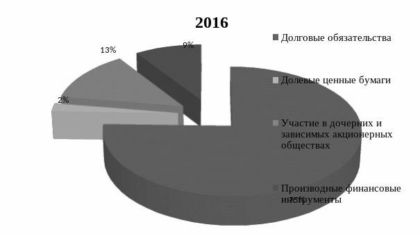 Наибольший рост с 2013 года показали долговые обязательства нерезидентов (297,54%), за ними следуют долговые обязательства РФ (271,56%) и долговые обязательства резидентов (205,42%). Такое положение можно объяснить требованием уровня приемлемого риска. Производные финансовые инструменты показывают самую неустойчивую динамику, резкий рост в 2015 связан с колебаниями курса валют [3].