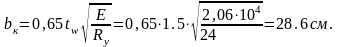 Проверку опорного ребра балки на устойчивость производим с учетом площади расчетного сечения ребра и части стенки балки включенной в работу шириной:
