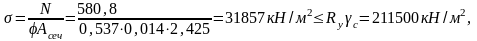 В зависимости от λ = 114,39 и Ry= 235МПа,φ = 0,537.