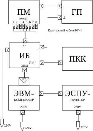 Схема 1. Общая схема соединений ЛКС-7 каротажной станции