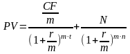 Якщо купонні виплати здійснюють декілька (m) разів на рік, то формула внутрішньої вартості набуває вигляду :