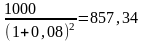 Визначимо, яку ціну заплатить інвестор за безкупонну облігацію з номіналом у 1000 гр од і погашенням через 2 роки, якщо необхідна норма дохідності становить 8%.