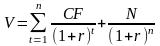 Нехай майбутні купонні виплати дорівнюють відповідно CF1, CF2, CF3....... CFn, вони, як правило, однакові між собою. Основна сума боргу (номінал) виплачується в момент погашення облігації (наприкинці операції) – n, то теперішня вартість такого потоку визначається наступним чином.