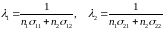 Рассмотрим теперь случай смеси двух различных газов. Пусть r1 и r2 означают радиусы молекул этих газов, а n1 и n2 — их концентрации. Теперь движущаяся молекула может сталкиваться не только с молекулами, себе подобными, но и с молекулами другого типа. В соответствии с этим с ней следует связать две сферы ограждения в зависимости от того, с молекулами какого типа она сталкивается. Введем четыре величины