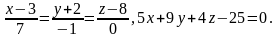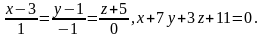 Задача 8. Написать канонические уравнения прямой, заданной двумя плоскостями.