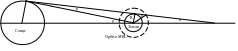 З урахуванням збіжності сонячних променів (конусоподібна тінь), кутова півширина тіні