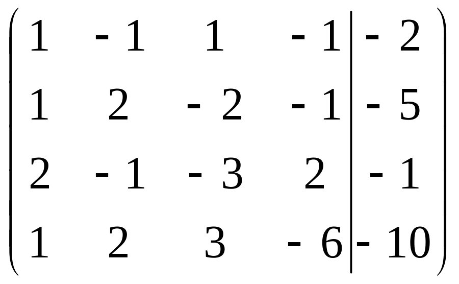 Записати систему лінійних рівнянь заданої блочною матрицею (А | В) в алгебраїчному вигляді. Дослідити систему на сумісність і знайти всі базисні розв’язки.