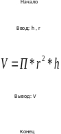 Постановка задачи: Вычислить объем цилиндра с радиусом основания r и высотой h.