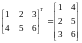 The transpose of a matrix A, written AT, is the matrix obtained by writing the columns of A, in order, as rows. For example,