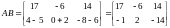 Because A is 2×2 and B is 2×3, the product AB is defined and AB is a 2×3 matrix. To obtain the first row of the product matrix AB, multiply the first row [1, 3] of A by each column of B respectively. That is,