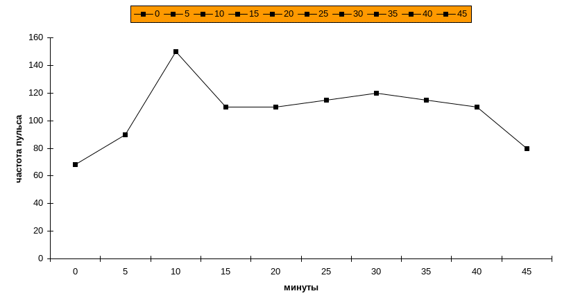 Рис. 2. Пример кривой пульсометрии урока физической культуры.