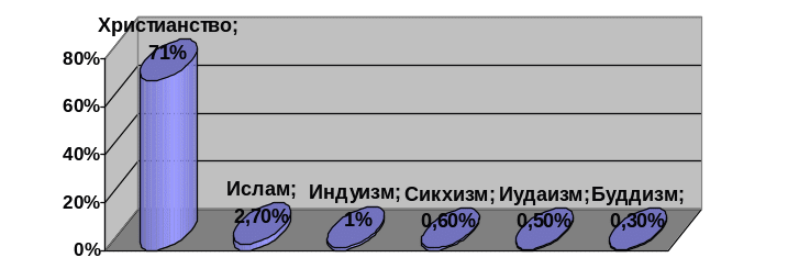 Рисунок 2 – Религиозный состав Великобритании (составлено автором по: [3]). |