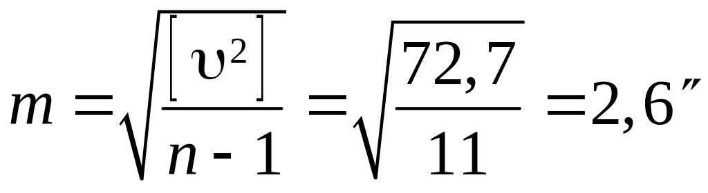- •1. Определяют среднюю квадратическую ошибку измерения с весом, равным единице, предварительно выполнив контроли вычислений по формулам (3.53):