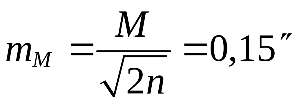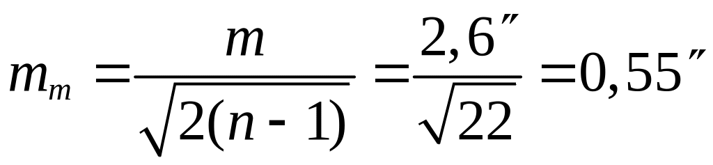Вычисление средней квадратической ошибки наиболее надёжного значения измеряемого угла: