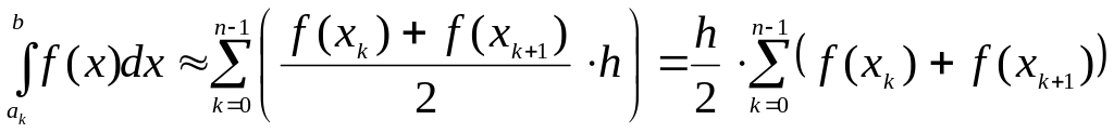 Квадратурная формула трапеций для всего отрезка получается суммированием по формуле (1.7):