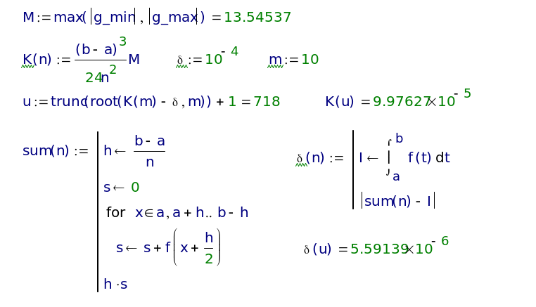 Вычисление погрешности квадратурной формулы средствами Mathcad