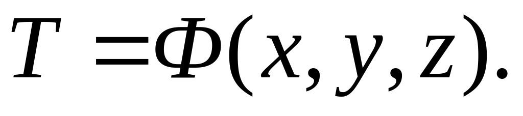 Как и всякое физическое явление, процесс теплопередачи происходит в пространстве и времени. Поэтому аналитическое исследование теплопроводности сводится к изучению пространственно-временного изменения основной физической величины – температуры, характеризующей данное явление, то есть к нахождению зависимости: