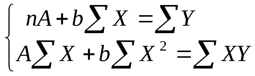 МНК для оценки параметров функция регрессии по линеаризованной степенной функции дает следующую систему уравнений: