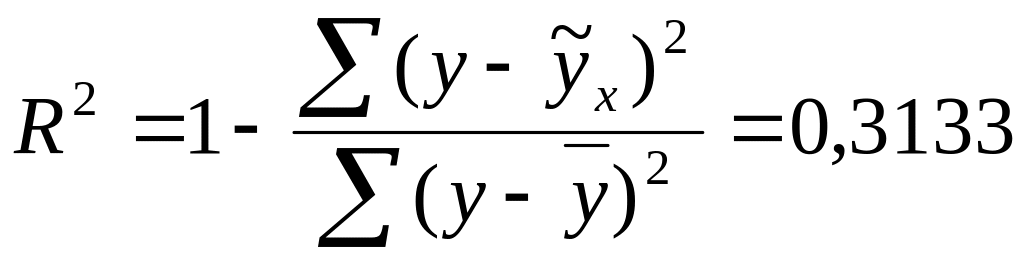 Индекс детерминации показывает, что вариация результативного признака на 31% обусловлена влиянием включенного в модель фактора.