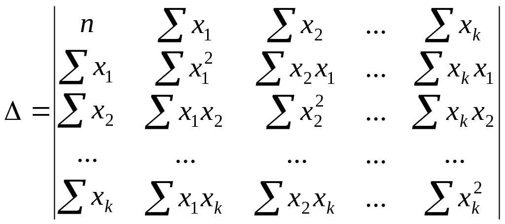 Как, и в уравнении в натуральном масштабе параметры стандартизированного уравнения можно найти методом определителей: