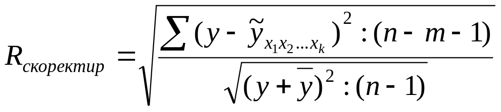 для нелинейных функций.Приведите формулу расчета скорректированного индекс множественной корреляции.