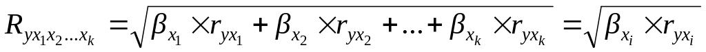 Приведите формулу расчета показателя множественной корреляции.