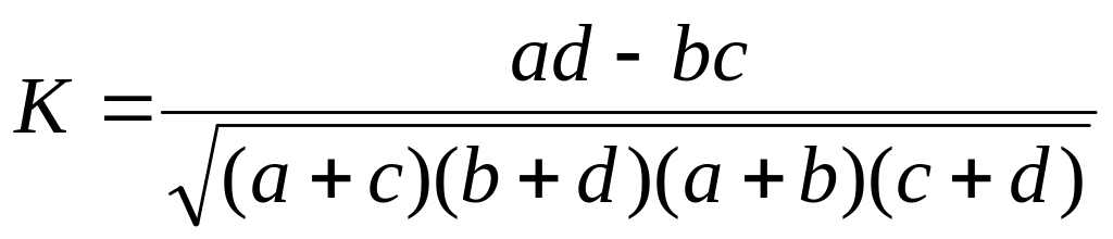 Приведите формулу расчета коэффициента ассоциации Пирсона.