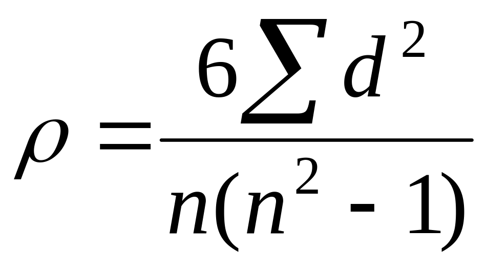 Коэффициент корреляции рангов Спирмена рассчитывается как: