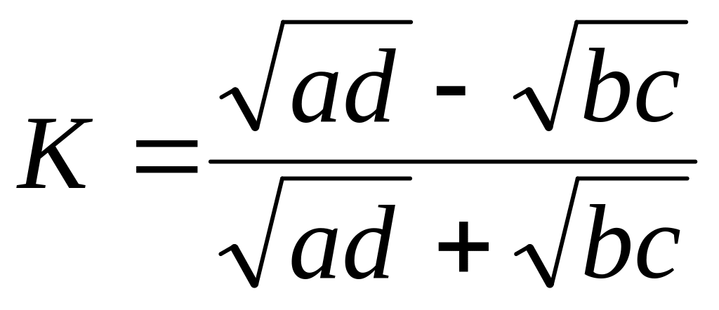 Приведите формулу расчета коэффициента коллигации Юла и Кендела.