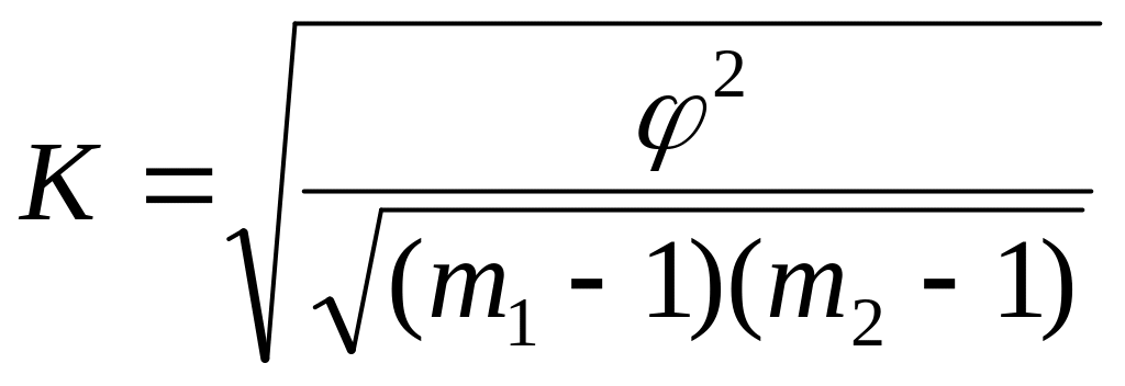 Коэффициент взаимной сопряженности Крамера рассчитывается как: