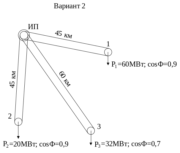 Необходимо выполнить электроснабжение пунктов 1,2,3 от источника питания (ИП) в Ставропольском крае городе Кисловодск в соответствии с заданием.
