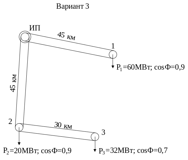 3 вариант: ∑L3=LИП-1+LИП-2+L2-3=45+45+30=120км.