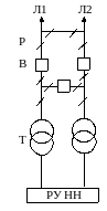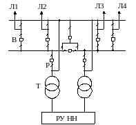 В кольцевом варианте все подстанции будут являться проходными в зависимости от режима работы сети и имеют по 2 линии питания. Для таких подстанций выбираем схему мостика с выключателями в цепях линий и ремонтной перемычкой со стороны линий (рис.10).